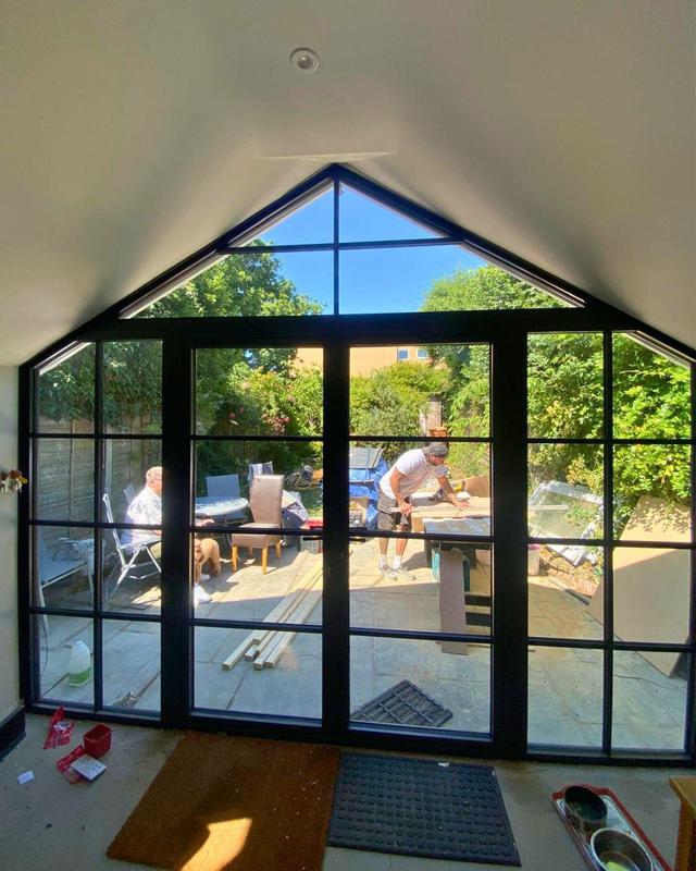 - After Pictures of Brand New Gable end Aluminium French Doors, Side Panels and Top Light with Astragal Bar