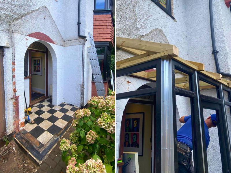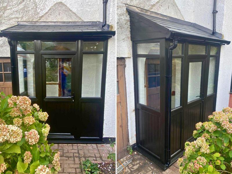 - During the Installation of a New Porch in South London. Black Upvc Frames with Composite Tiled Roof