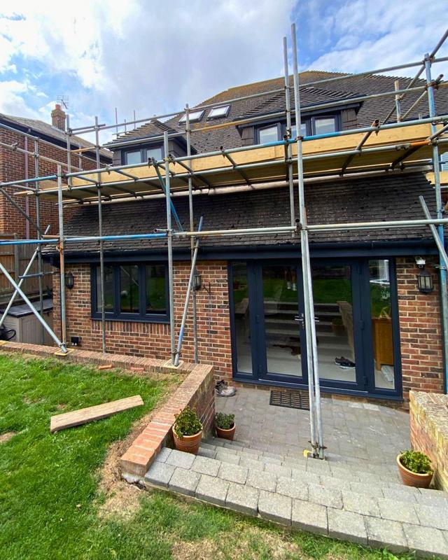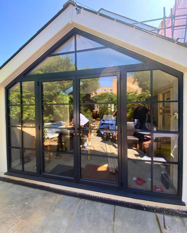 - After Pictures of Brand New Gable End Aluminium French Doors, Side Panels and Top Light with Astragal Bar in Whitstable, Kent CT5