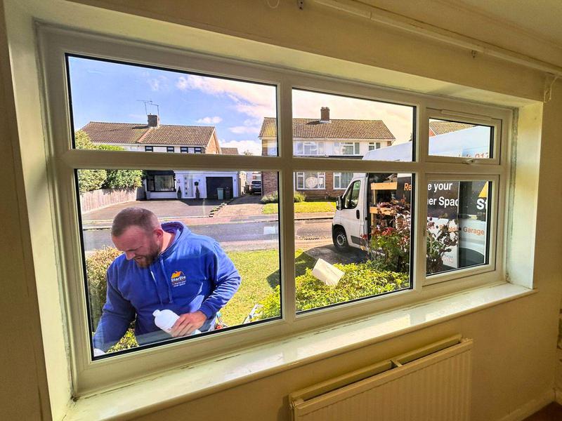 - Internal View of White Casement Window with Reflective Glass Installed in Maidstone, Kent