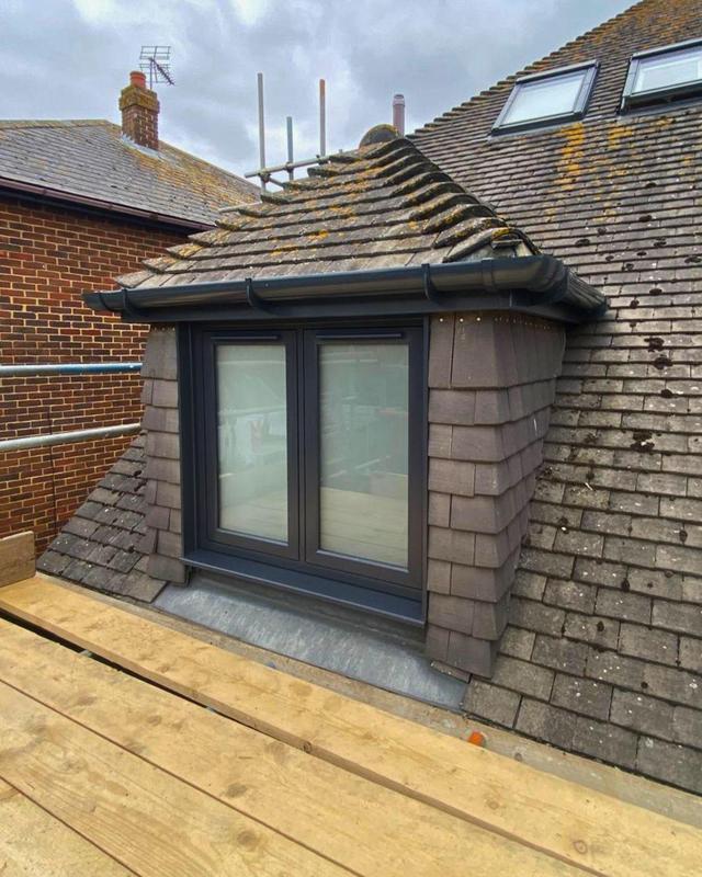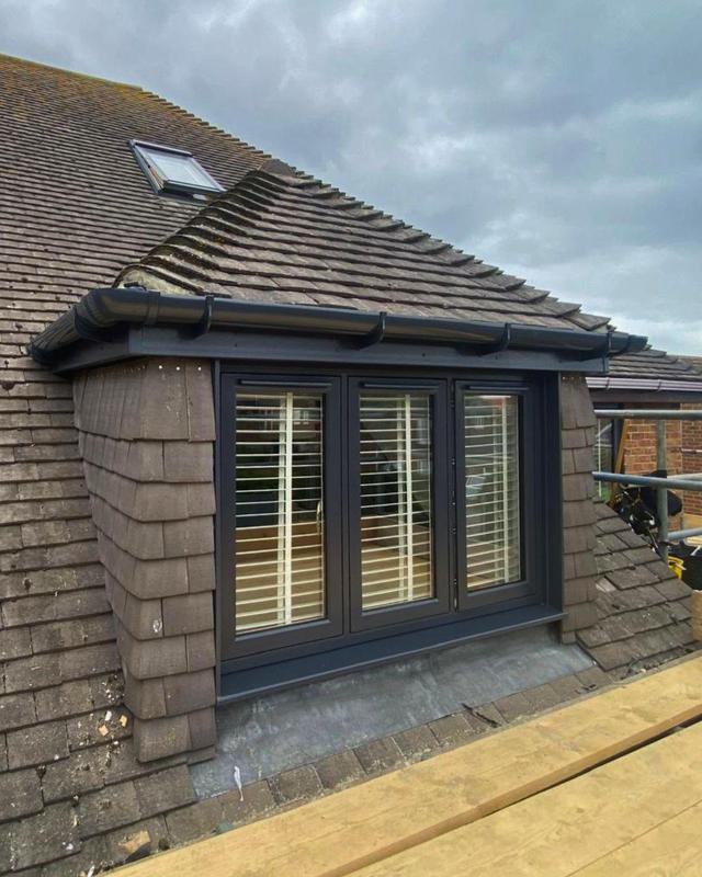 - Anthracite Grey Flush Casement Dormer Window with Fascia, Soffit & Guttering