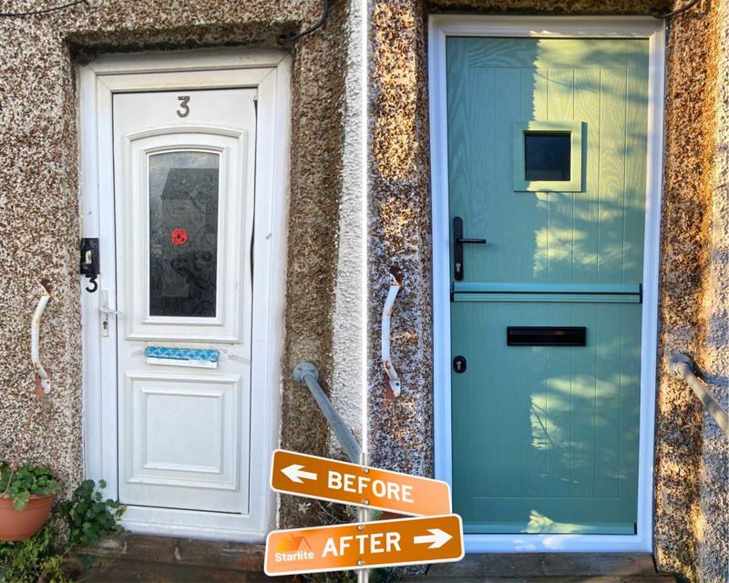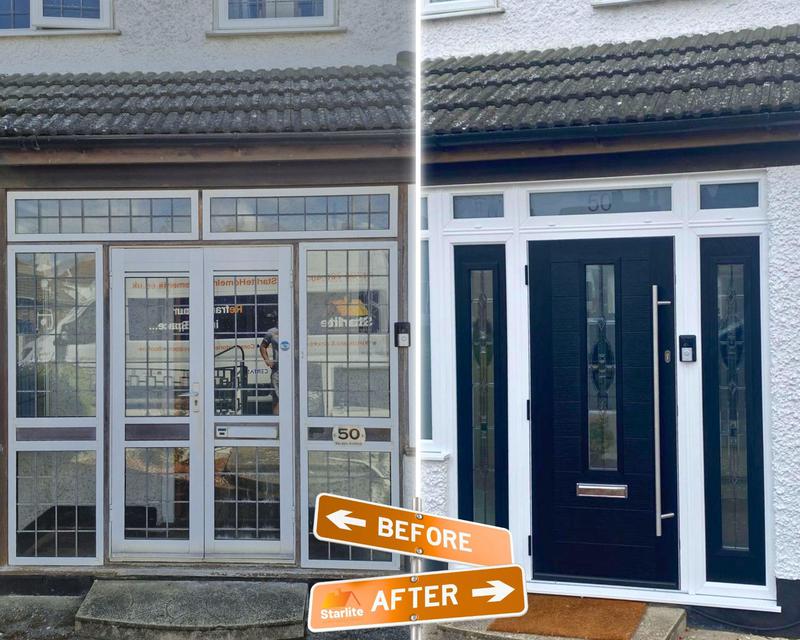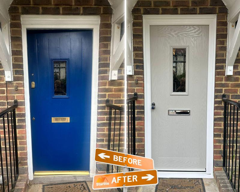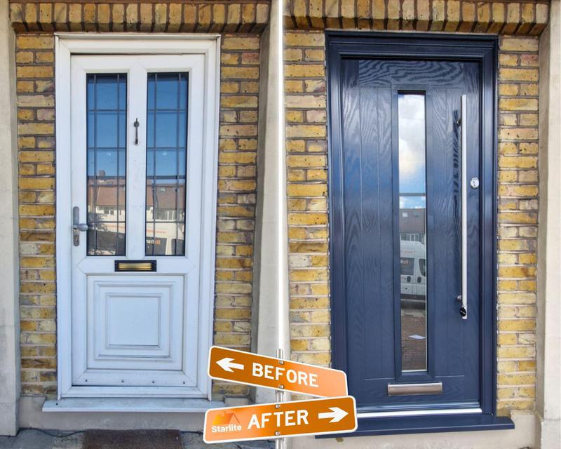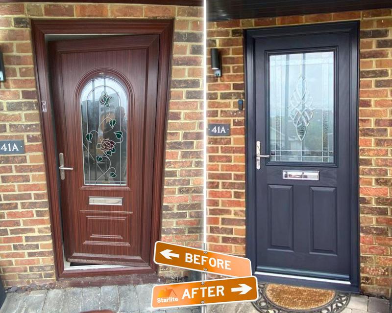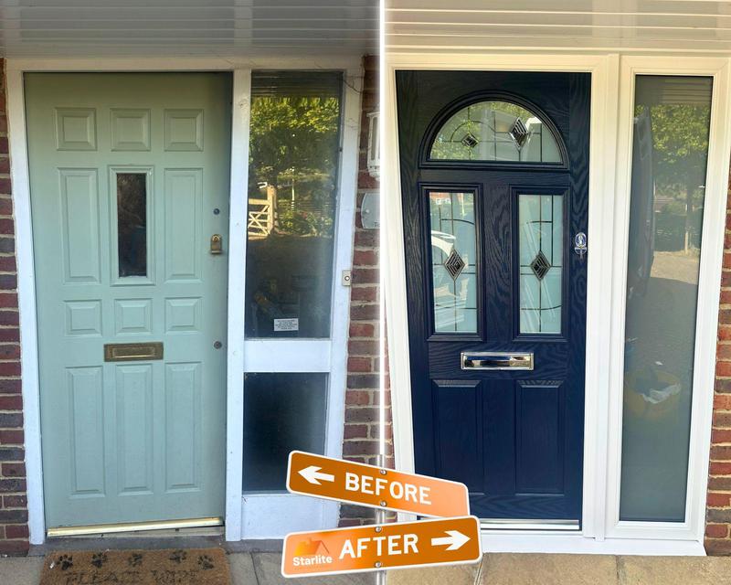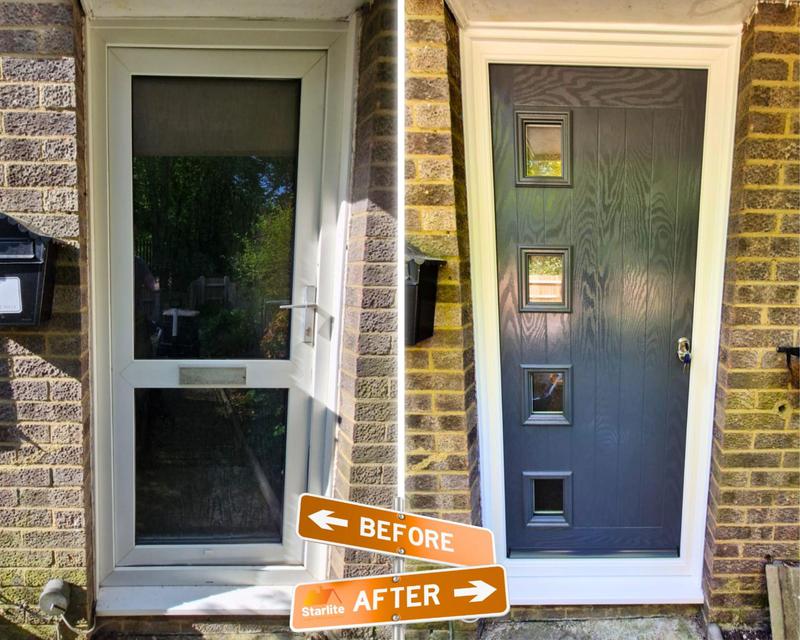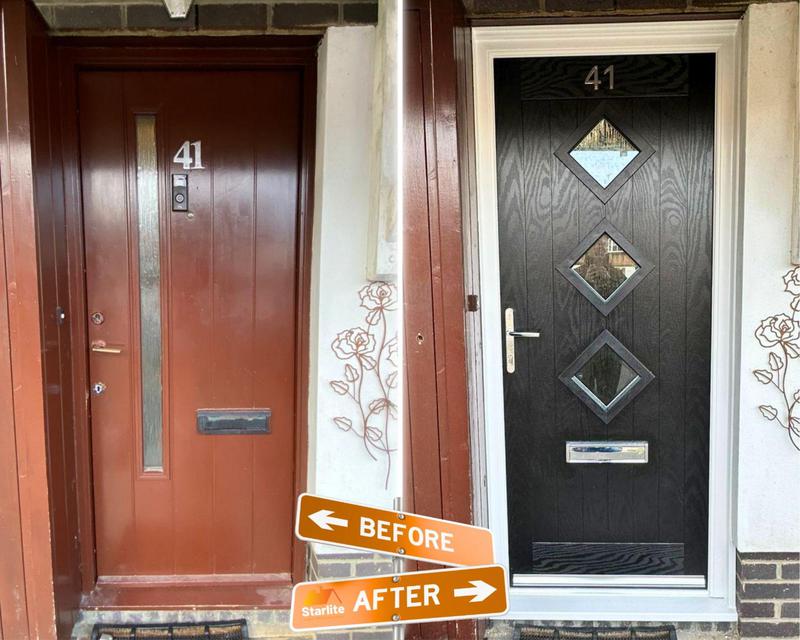 - Before & After Supanova Composite Door in Anthracite Grey with Apollo Glass