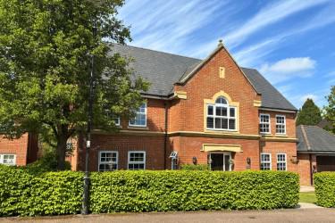 - Kings Hill - Oct 24 - Rear View. Optima A Rated Casement Windows & French Doors in Anthracite Grain Woodgrain Effect.
