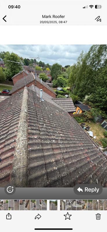 Colin - Image 1 "Mark and his team carried out the work very efficiently and to a high standard, the bulk of which was done on one day. It included replacing a cowl on a soil pipe, replacing battens and felt for a metre wide strip leading to the soil pipe and clearing moss from the entire roof and carrying out a gutter clearance. In addition, cracked tiles were repaired and work was carried on some the ridge tiles and in the valley. The team cleared up after their work and a receipt and 10 year guarantee was received without any delay."
