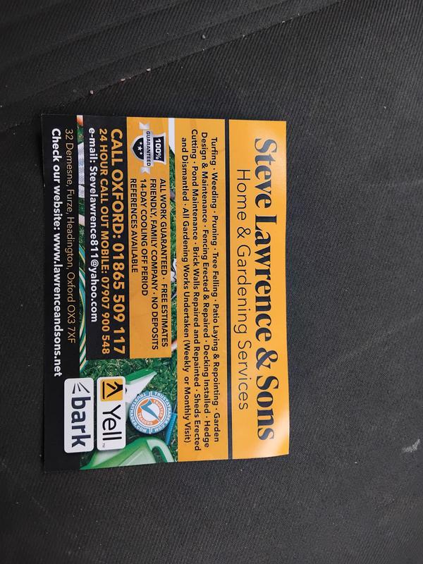"Thank you to Steve Lawrence and his team. Carried out professional work on my garden. Pressure wash patio, and repointing, Clear all my garden and flower beds, Taking down all my old fencing and supplied with new fencing. Will definitely use again and highly recommend Steve and his team."