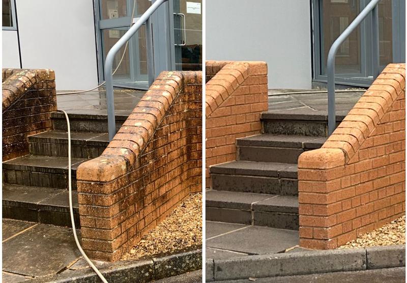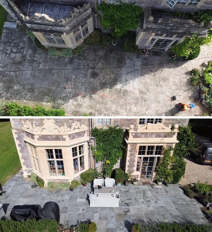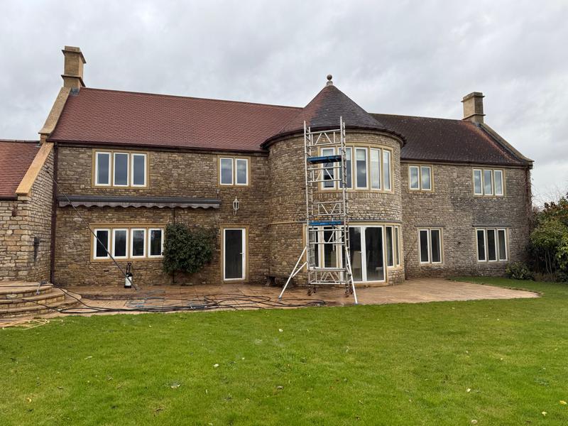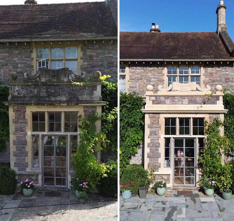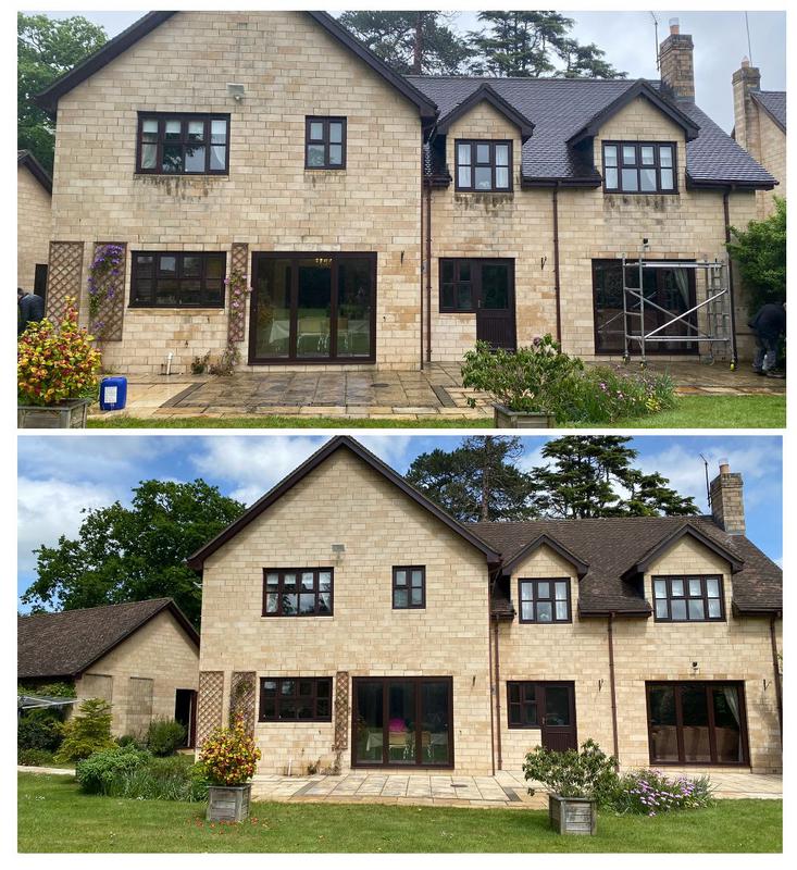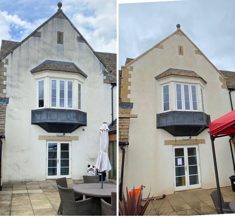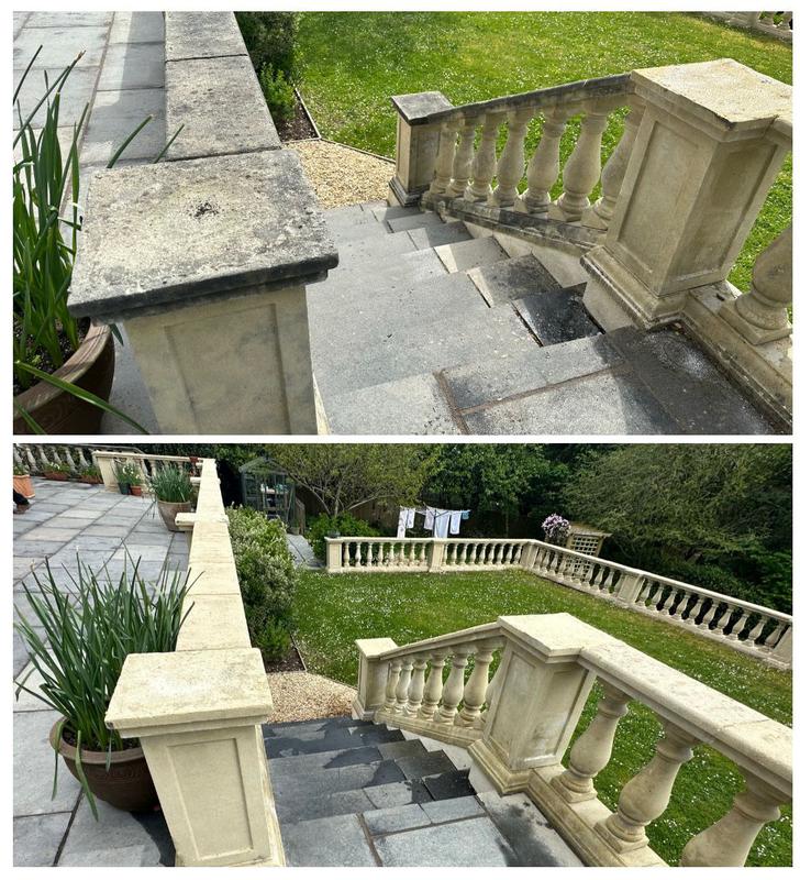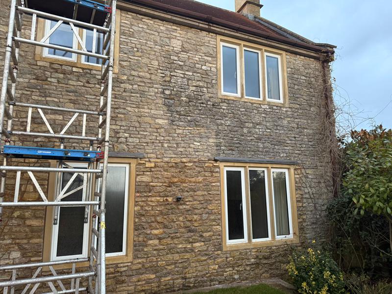 "Really pleased with the work, soft washed Cotswold Stonewall which looks amazing, and cleaned our huge patio and re-sanded and brought back to its best. Thank you Steve, Gavin and Sam 👍🏻"