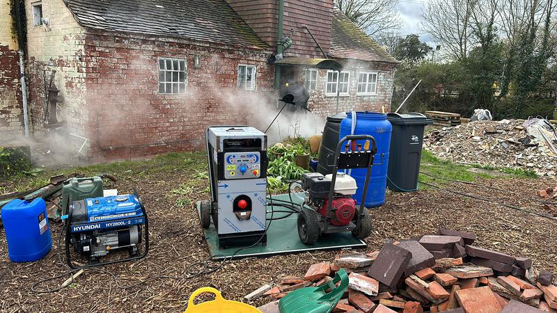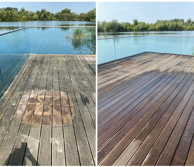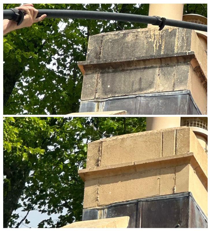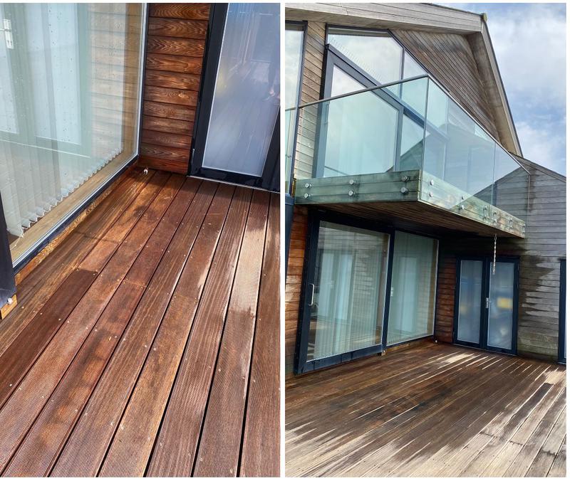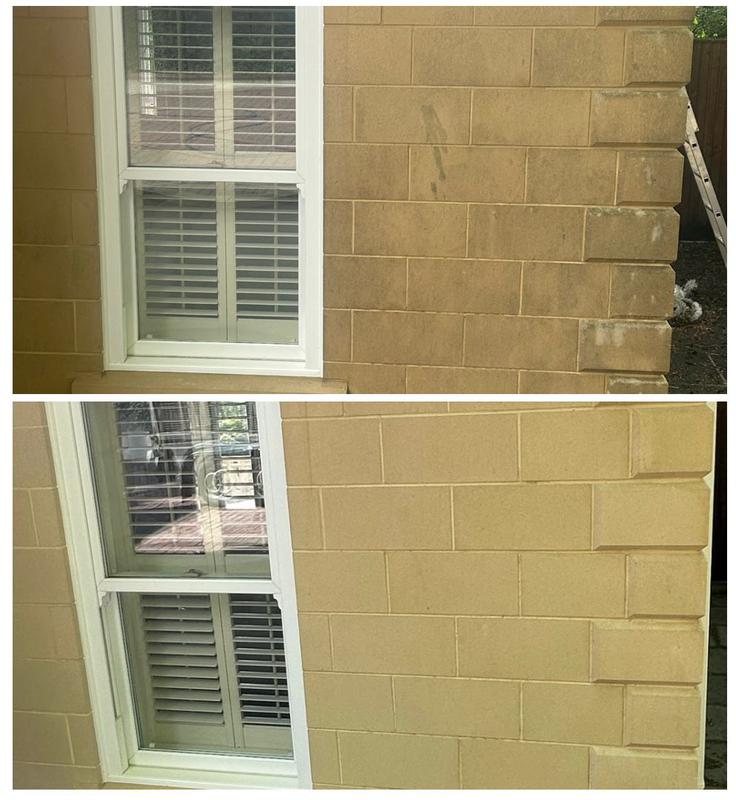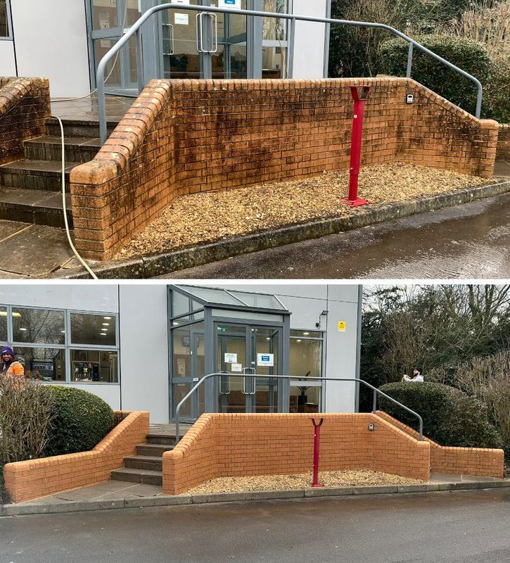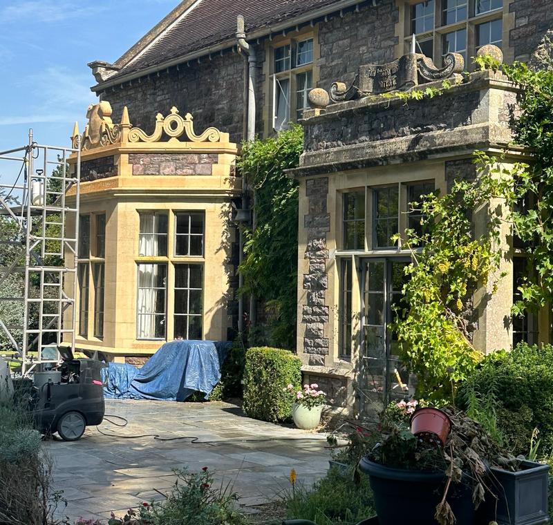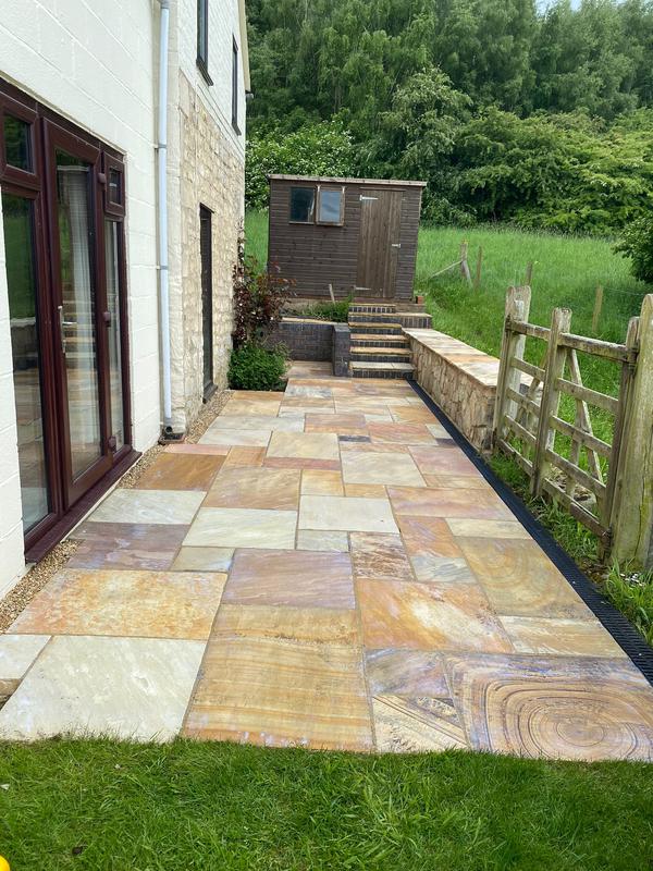 "Really pleased with the work, soft washed Cotswold Stonewall which looks amazing, and cleaned our huge patio and re-sanded and brought back to its best. Thank you Steve, Gavin and Sam 👍🏻"