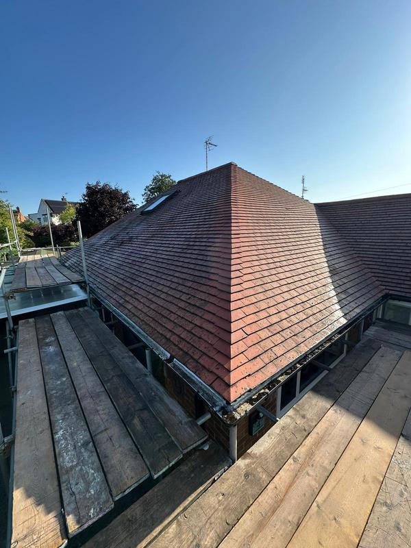 "Scaffolding went up on time but due to a lot of rain the work was slightly delayed but once the guys arrived, they were all over it. These guys just never stopped. No loafing about, no tea breaks or smoke breaks, just half an hour lunch and the rest of the day spent grafting. 2 days later, we had a new roof, all mess removed and the place left clean and tidy. The next day it rained and I walked around in the loft. No leaks. Looks like we got the right guys for the job. Don’t waste your time anywhere else - just hire these guys and get the job done properly"
