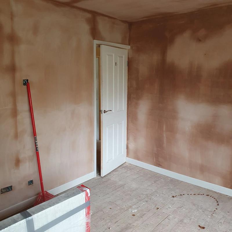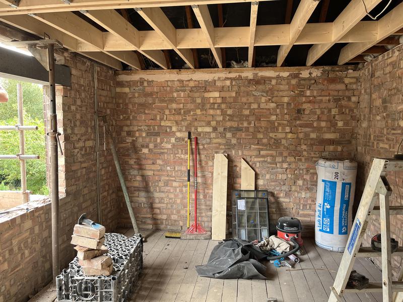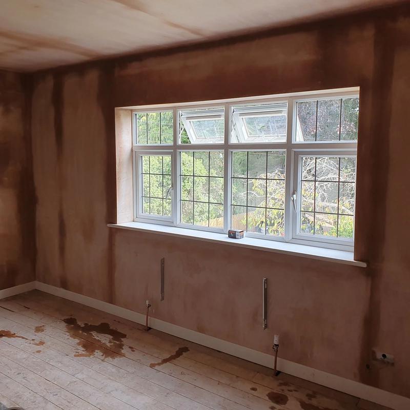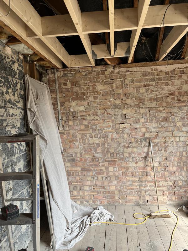 - The plasterwork was stripped back to bare plaster. We then fitted insulated plasterboard to make the room warmer.