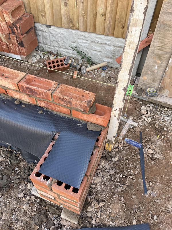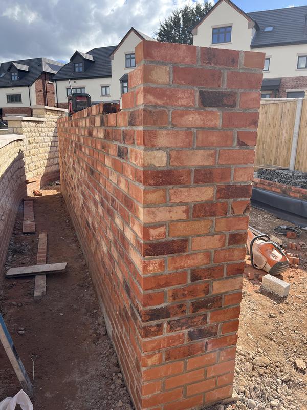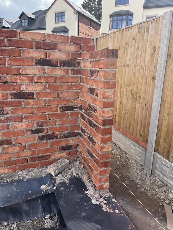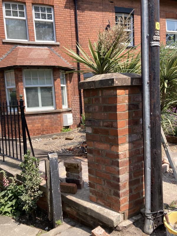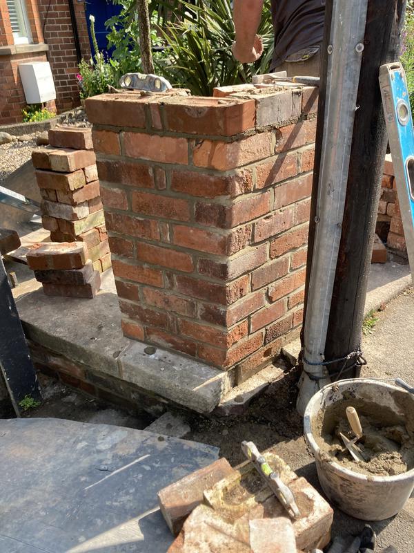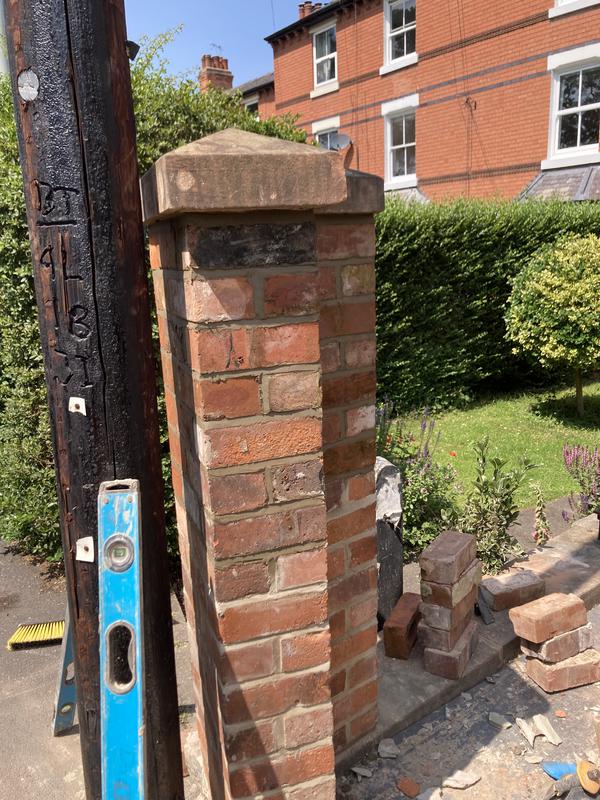 Damaged brick wall pillar rebuild using reclaimed bricks