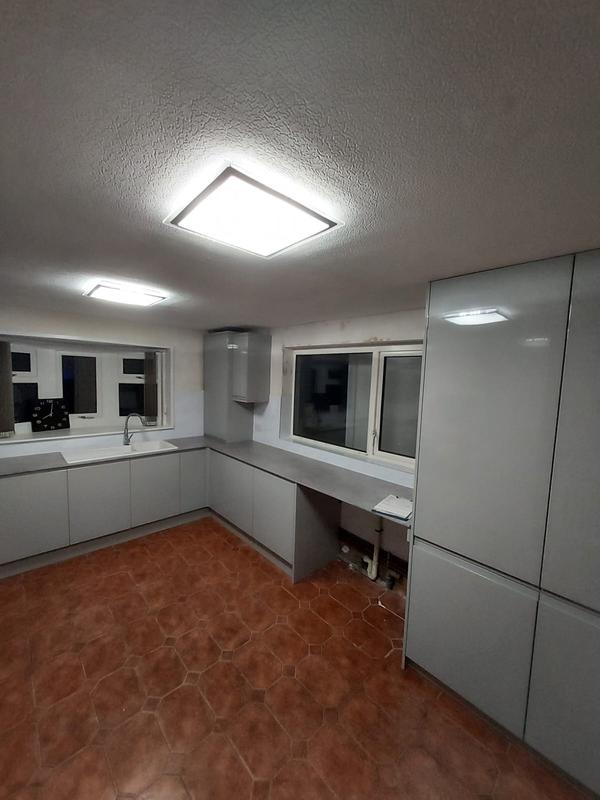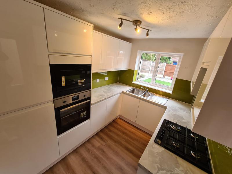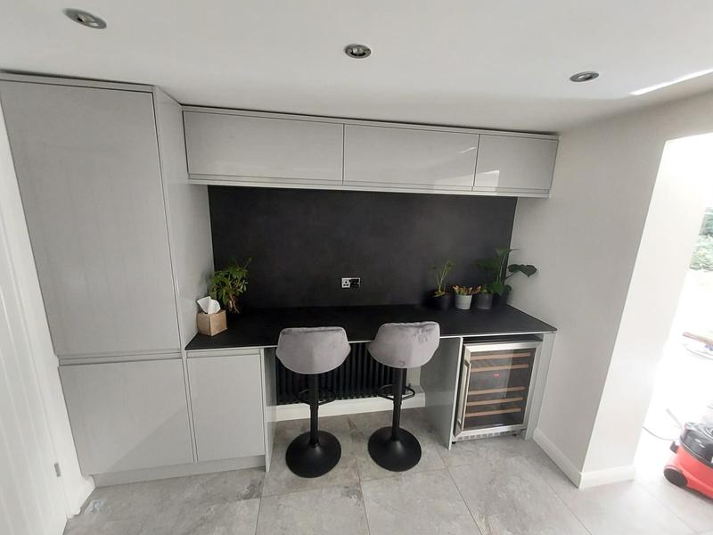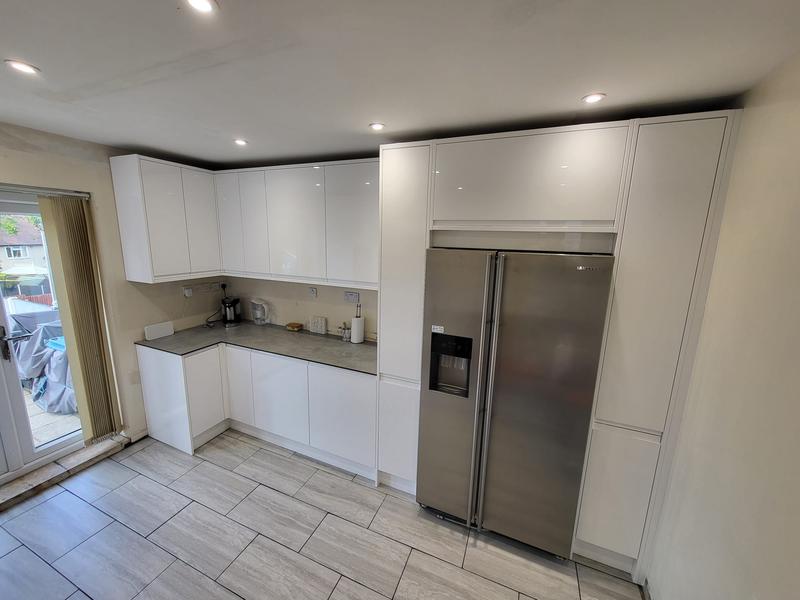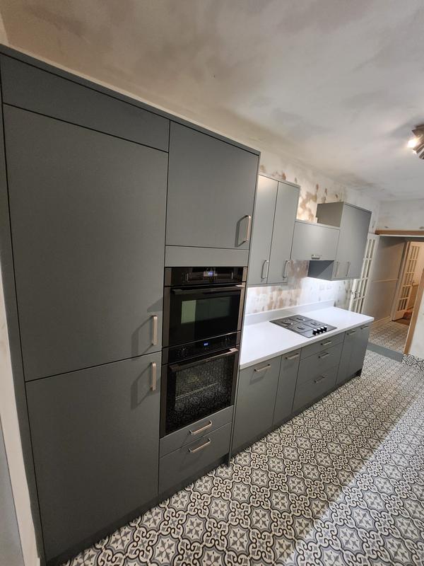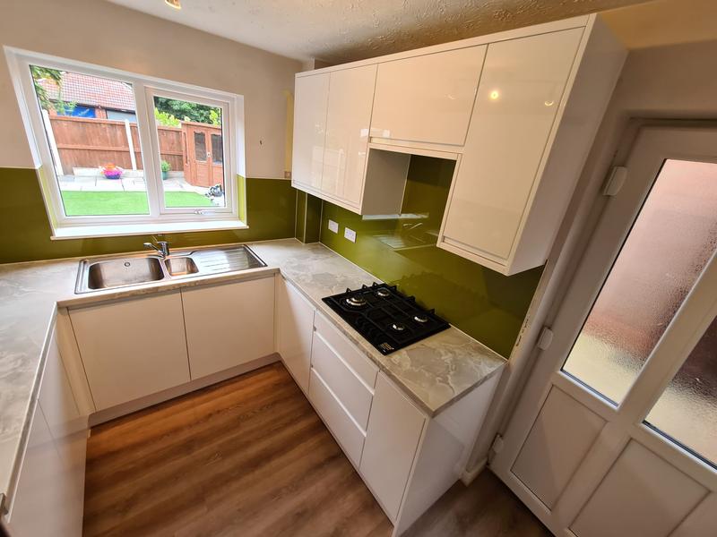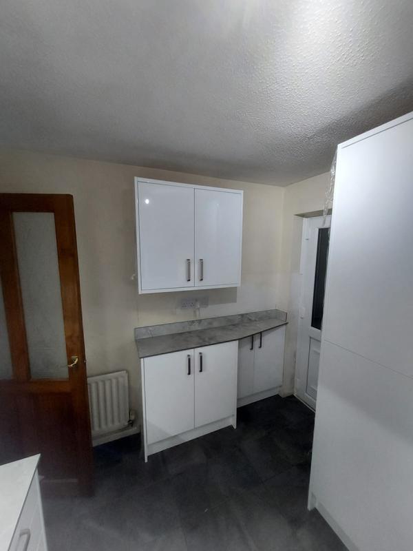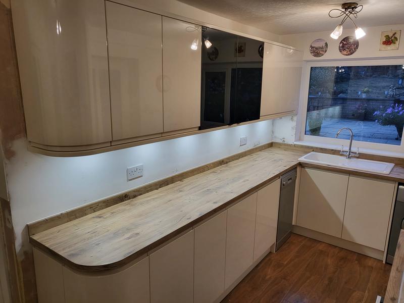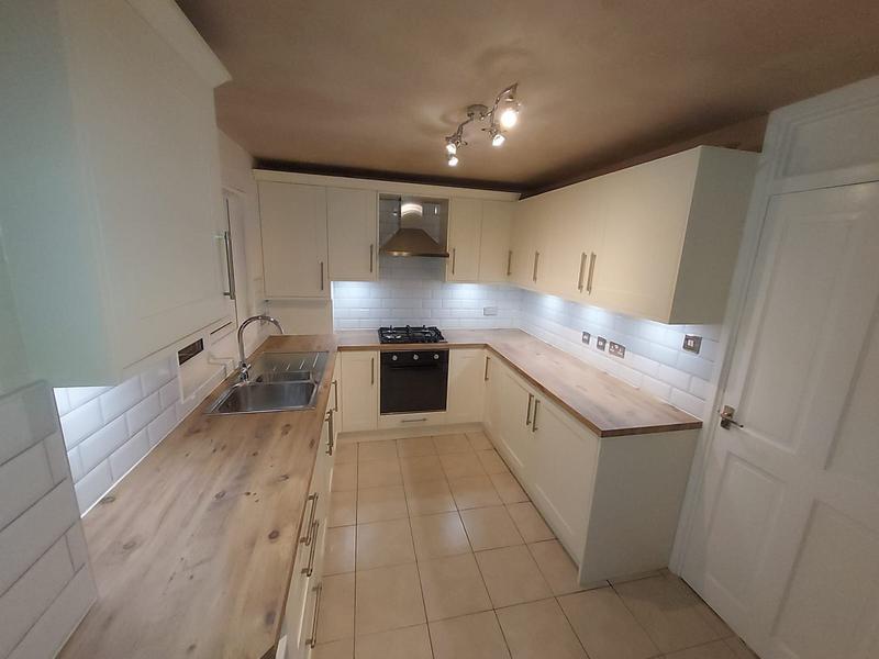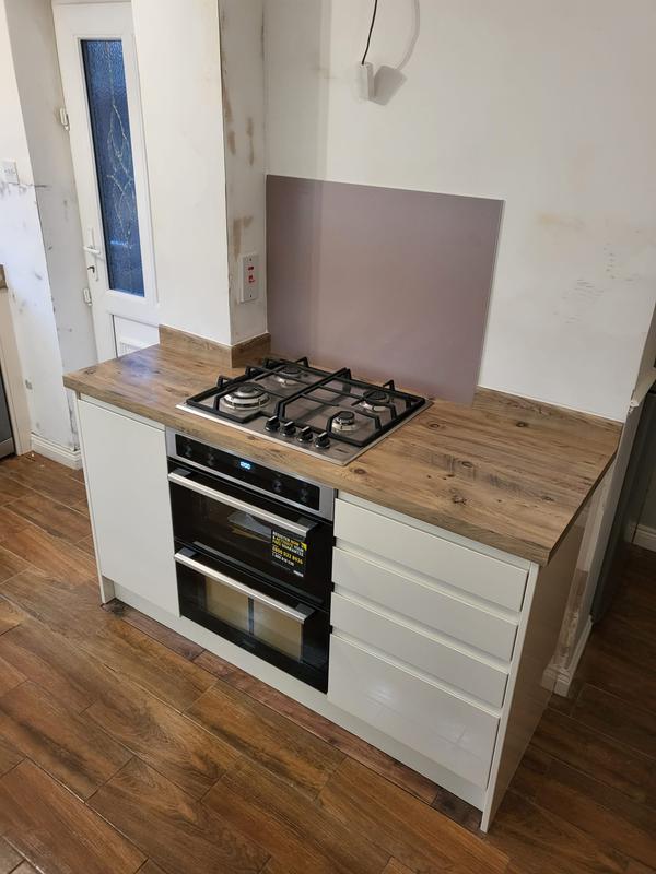 Nicola - Image 1 "Really pleased. Was punctual, kept me well informed. Did a great job overall. My only negative was the floor tiles were slightly out but I think that was more down the kitchen not being level rather than the tiling itself. I had the floor tiles down first then the kitchen cupboards placed on top and it wasn't until the cupboards went in that you could see it but the tiling itself was very neat. I had the heringbone tiles on the wall and they did a fantastic job with those. Very pleased with everything else. They did a great job"