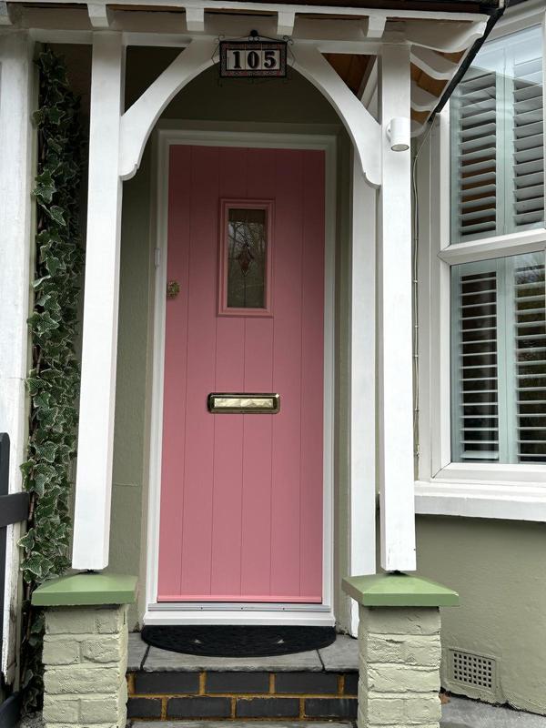 - Installation of Solidor style Ludlow 2 in Painswick Green with London Etch Border and a fixed side light with Satin glass.