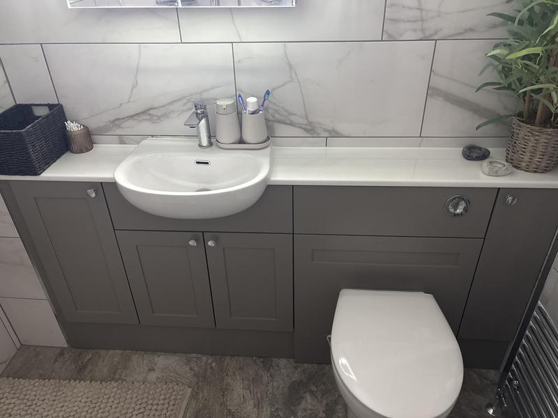 Laura - Image 1 "This is the fitted units in our En Suite which works perfectly in the space that we had which Trevor worked out and provided for it all to fit neatly while having plenty of room and storage .Absolutely love the finish which was all completed in 5 days including our shower ,Tiling ,downstairs toilet and fixtures and fittings. They didn’t stop apart from a snack break at lunch time and left the house each day clean and tidy . Trevor also kept our budget in mind which was discussed before fitting and kept it to that. Highly recommend"