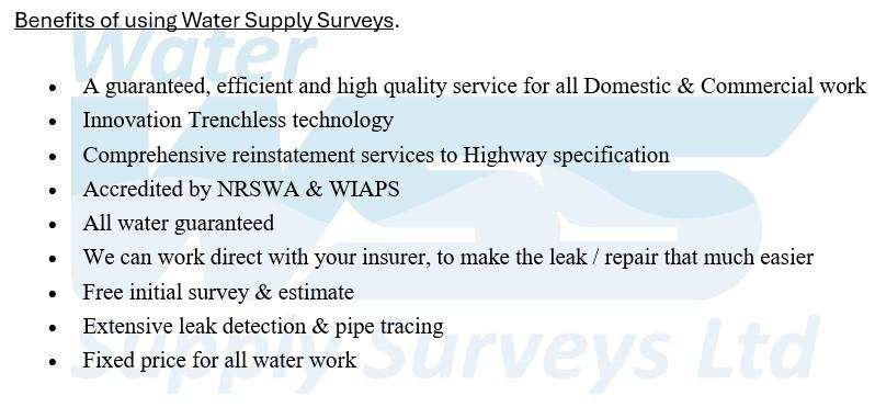 We look forward to hearing from you or to find out more about Water Supply Surveys Ltd please look at our websitewebsite