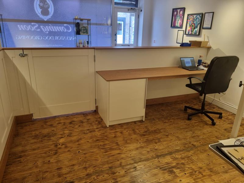 Rebecca Thompson - Image 1 "Keith built and installed a reception desk and partition wall for my new Dog Grooming salon. From the beginning, he understood my vision, worked with me to stay in budget without compromising on what I wanted, and listened to me about what works practically in my industry. Arrived on time, worked tidily and has all around done a fantastic job. The work is of brilliant quality and even better than I imagined. I know it will serve my business for years to come and will give my clients a touch of luxury as soon as they walk in the door. Could not recommend enough."