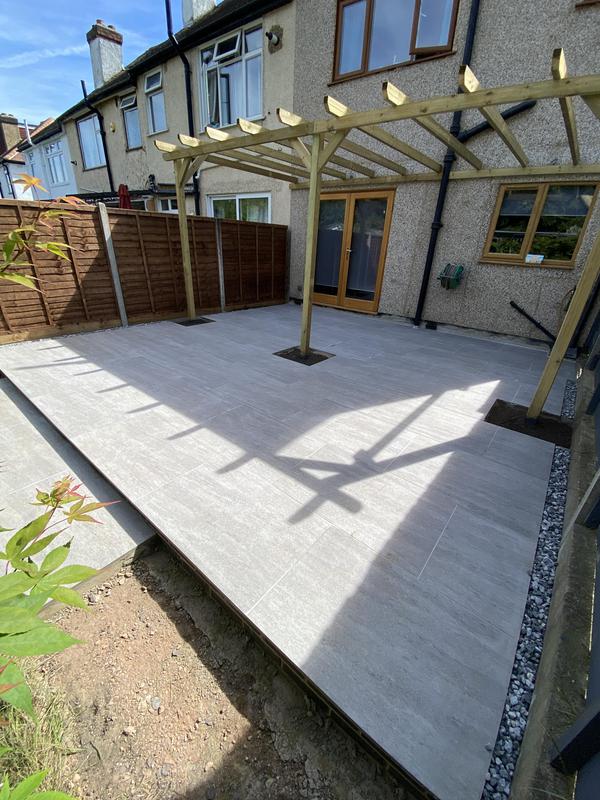 "New porcelain patio & replacement fencing High quality of care & precision taken by Paul & Andy in all their work. Friendly, tidy, punctual, reliable & professional. We are very happy with the result & would definitely recommend the company."